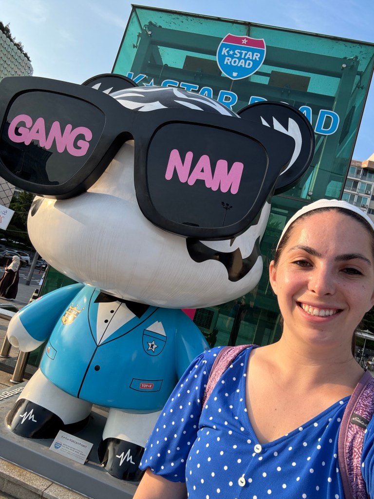 On my last night in Seoul, I decided to explore Gangnam—the flashy neighborhood that inspired the global hit “Gangnam Style” and is famous for its K-pop star sightings and upscale vibe. I started at the Coex Starlight Library, tucked surprisingly in the mall’s basement—such an unexpected but stunning spot, with towering bookshelves that make it a favorite for photos. Then I wandered along K-Star Road, where cute cat-like statues featuring designs inspired by different K-pop artists line the street, adding a playful touch to the luxury surroundings. Right nearby, high-end stores like Louis Vuitton showed off Gangnam’s ritzy side. I wrapped up my day with a delicious bibimbap, feeling like I truly lived the Seoul experience—and that this city had completely stolen my heart.