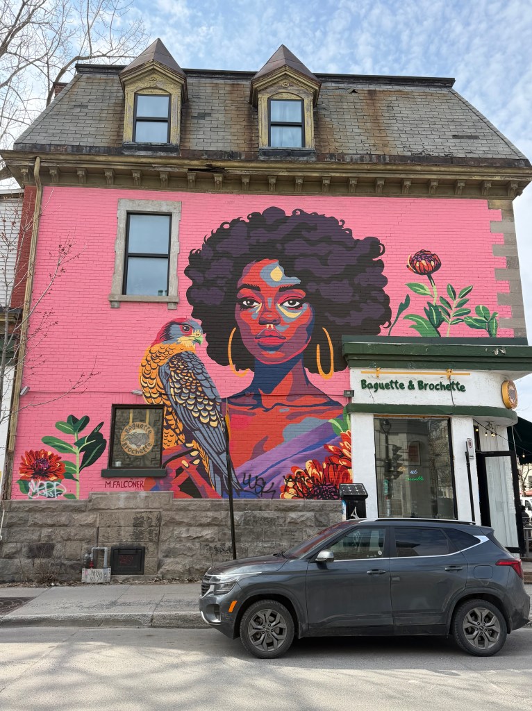 One thing I noticed more this time around was the street art. With the guide pointing things out, I realized just how much incredible mural work is woven into the neighborhood—Montréal’s creative energy really shines here.