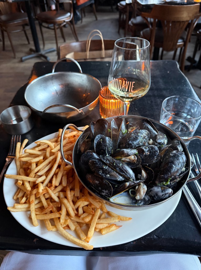 For dinner, I stayed in Old Montréal and found a cozy spot at Modavie. The live jazz music instantly set the tone, and I lucked out with a table right near the musician. I started with steak tartare, followed by mussels and frites—classic, comforting, and exactly what I was craving. Dinner stretched on a bit (in that relaxed, European way), and when my apple pie dessert took a while, they kindly brought out a dessert vermouth on the house. No complaints here—it just added to the charm of the night.