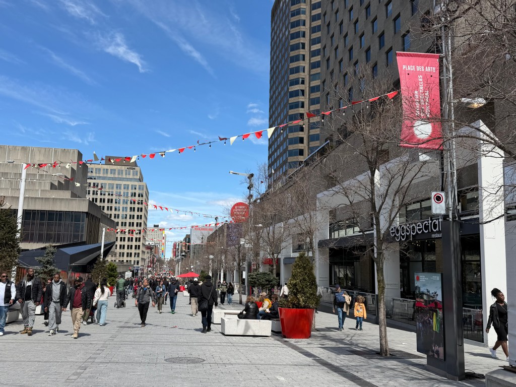 Nearby, I wandered into Place des Arts, the cultural heart of Montréal. Home to multiple theaters, concert halls, and the opera, the entire area was buzzing. People were out enjoying the sunshine, relaxing, and soaking up the energy of the city. It felt like the perfect final snapshot of Montréal life.